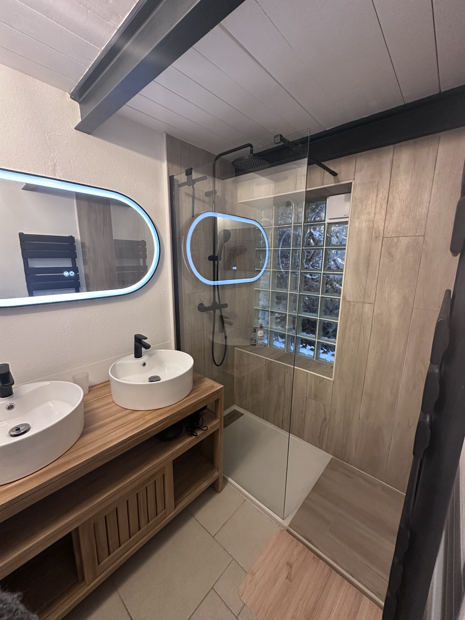 Au rez-de-chaussée, vous pourrez profiter de son grand espace de vie avec sa cuisine ouverte sur la salle à manger et le salon (avec TV et WIFI)